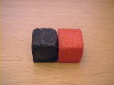 atoms using simple building blocks. I have used black and red cubes in