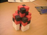 atoms using simple building blocks. I have used black and red cubes in